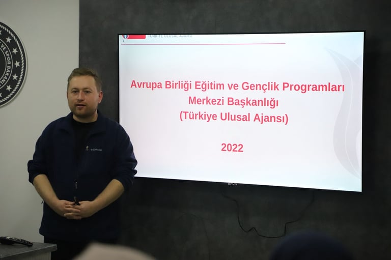 Karabük Gençlik ve Spor İl Müdürlüğü personeline yönelik düzenlenen “Gençlik Çalışanları İçin Uluslararası Projeler Eğitimi” kapsamında, uluslararası proje fırsatları ve başvuru süreçlerine ilişkin bilgilendirme gerçekleştirildi.