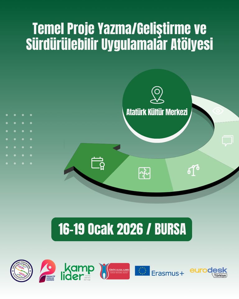 Kamp Liderleri Derneği’nin partnerliğinde, Küresel Girişimci Engelliler Derneği ve Proaktif Gençlik Derneği iş birliğiyle gerçekleştirilecek Temel Proje Yazma / Geliştirme Eğitimi ve Sürdürülebilir Uygulamalar Üretme Atölyesi için başvurular devam etmektedir.