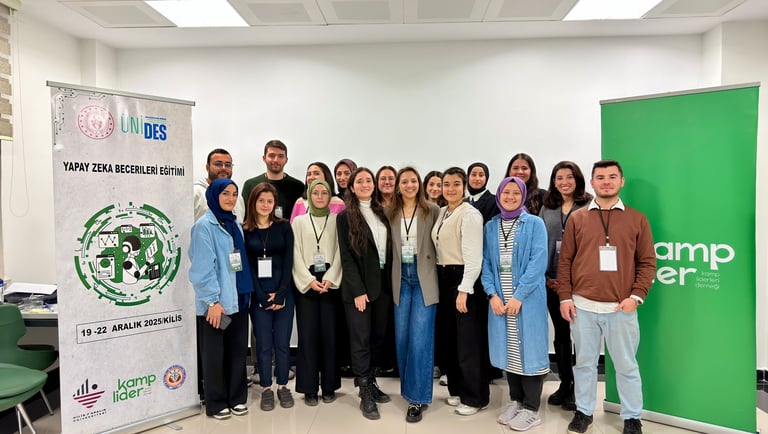 Yapay Zeka Becerileri Eğitimi, gönüllü kamp liderlerinin dijital okuryazarlık ve yapay zekâ temelli becerilerini geliştirmek amacıyla 19-22 Aralık 2025 tarihlerinde Kilis'te gerçekleştirildi.